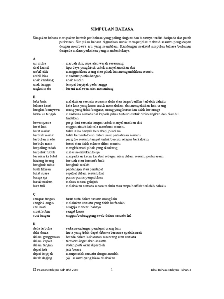Simpulan Bahasa Tahun 3 Worksheet For Tahun 3