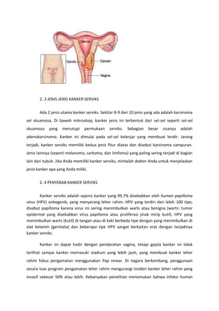 Namun sebagian besar kasus kanker serviks terkait dengan human papillomavirus dan kanker ovarium tidak memiliki hubungan dengan ini. Dalam kunjungannya Gibran tampak membawa putra sulungnya Jan Ethes. Medan ANTARA - Pemerintah Provinsi Sumatera Utara Rabu meresmikan Rumah Singgah Yayasan Kanker Indonesia YKI di Medan untuk mempermudah pasien penyakit kanker yang akan berobat.