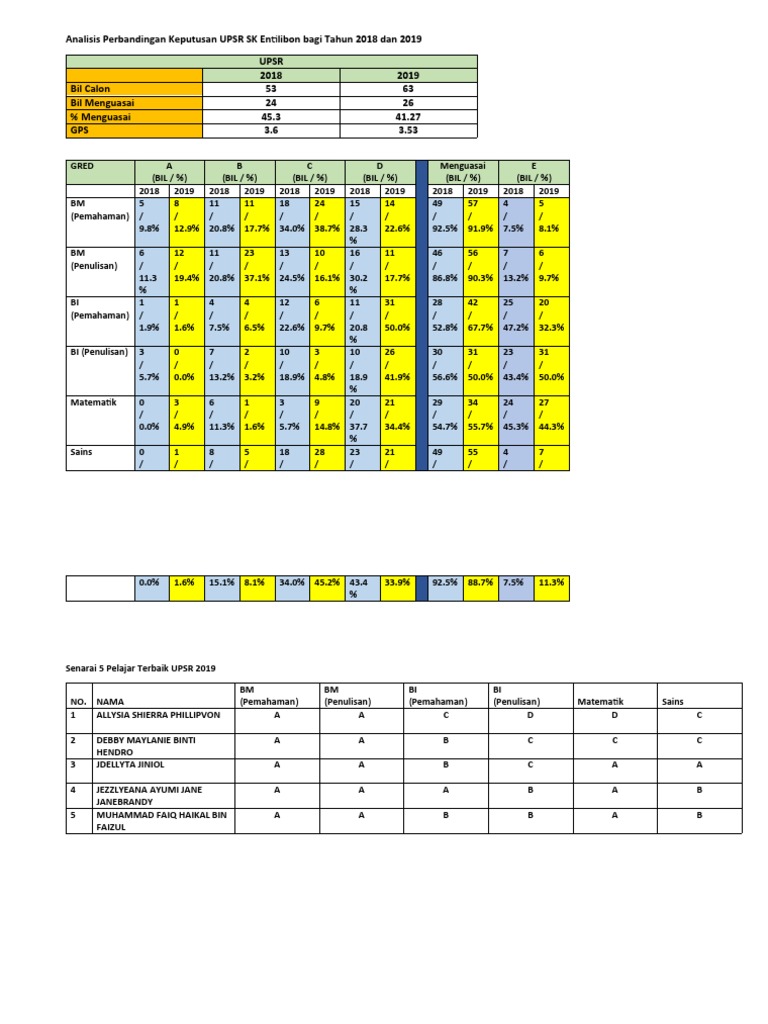 Analisis Perbandingan Keputusan Upsr 2018 Dan 2019 Pdf